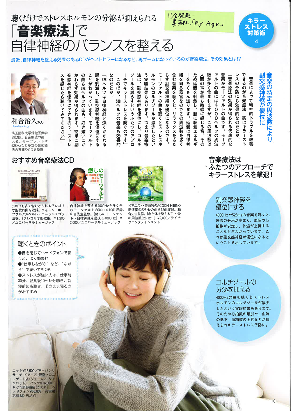 11月6日発売、集英社健康雑誌My Ageにて自律神経特集で和合先生のインタビュー記事で